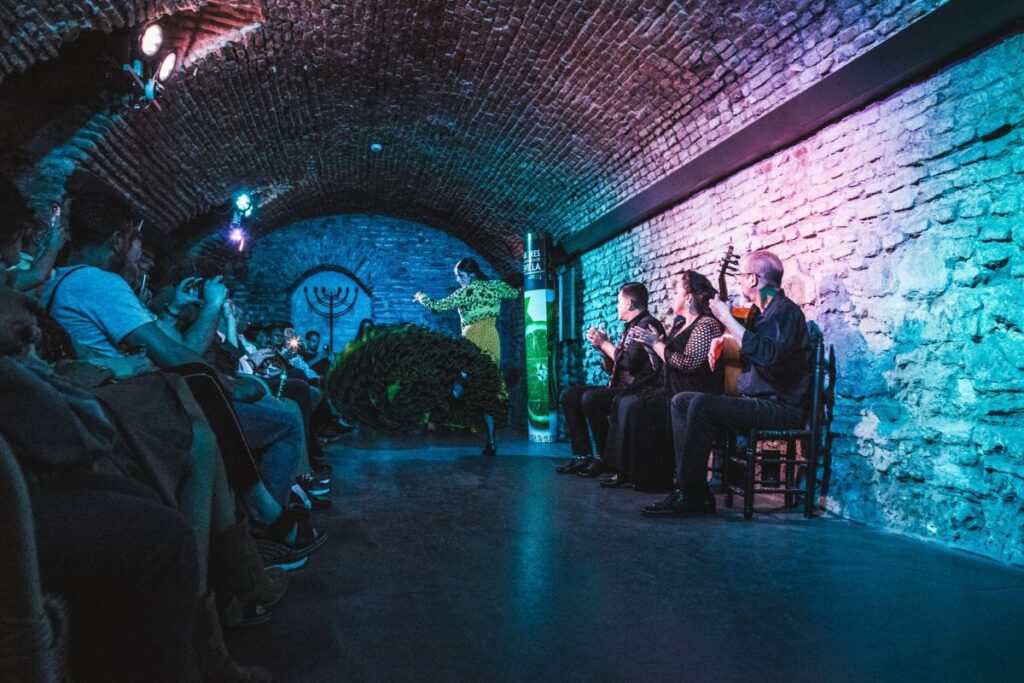 El Museo del Baile Flamenco ofrece experiencias que integran las distintas facetas de este arte declarado Patrimonio de la Humanidad: baile, cante y guitarra, tanto en su espacio expositivo interactivo como en sus espectáculos en directo.