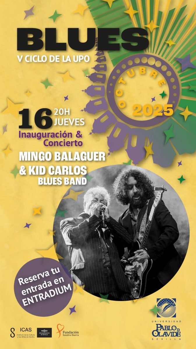El jueves 16 de octubre a las 20 horas actúa Mingo Balaguer & Kid Carlos Blues Band, que reúne la armónica y la voz de Mingo Balaguer, pionero del género desde los años ochenta, con la guitarra de Kid Carlos. El repertorio recorre el blues de Chicago, West Coast y Jump Blues. El viernes 17 de octubre, Txako & Sanpa presentan un proyecto que combina guitarra y voz con canciones que abarcan desde el blues más primigenio hasta el estilo West Coast, incluyendo el blues de Chicago, el rhythm and blues y el soul. Txako desarrolla su actividad en la escena sevillana, mientras que Pablo Sanpa cuenta con una carrera consolidada a nivel nacional e internacional.