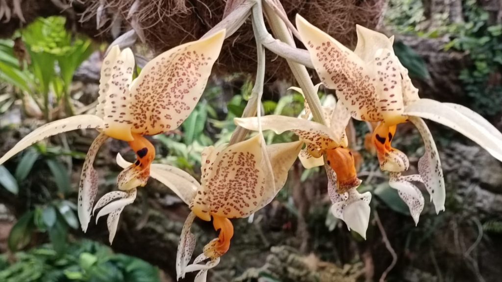El Parque Botánico-Orquidario de Estepona acoge la floración de la orquídea ‘stanhopea oculata’, una especie única que se caracteriza por su belleza y por emitir una intensa fragancia a chocolate blanco. Su gran esfuerzo en despedir tan característico y potente olor acorta la duración de sus floraciones, que no suelen superar los tres días.