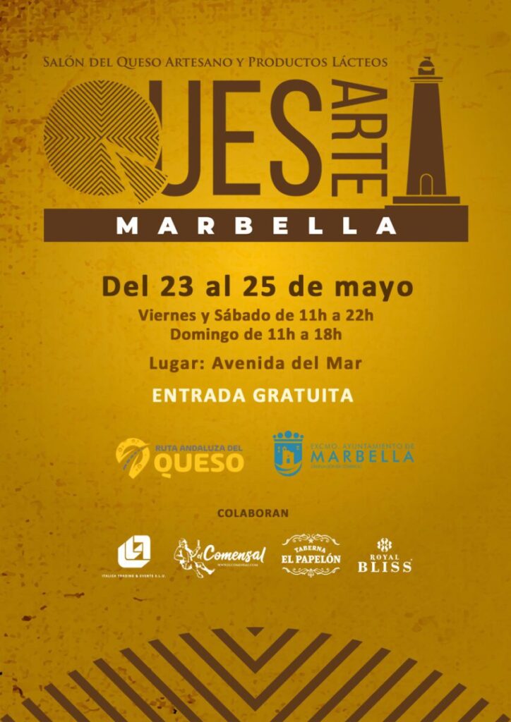 La avenida del Mar de Marbella será el escenario del Salón del Queso Artesano y Productos Lácteos ‘QuesArte Marbella’ del 23 al 25 de mayo, según informó la delegación de Comercio del Ayuntamiento. El evento, organizado conjuntamente por el consistorio y la asociación sin ánimo de lucro Aquesart, ofrecerá entrada gratuita y reunirá a diversos expositores con una amplia muestra de productos nacionales.